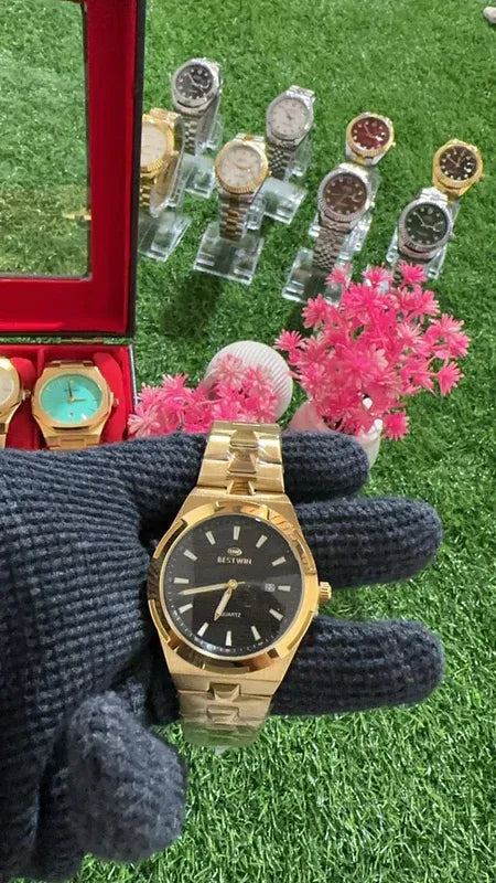🖤 Premium BestWin Watch – Gold + Black | Waterproof| Stainless Steel | Aurix